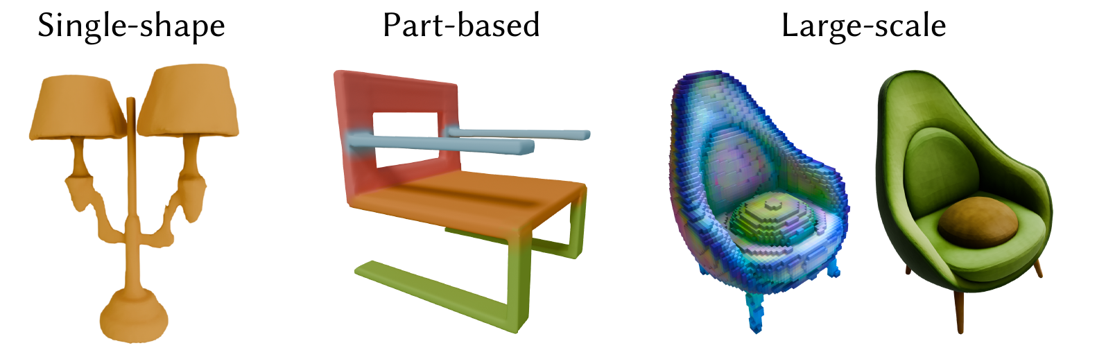 PhysiOpt is compatible with various 3D generative models including global-shape latent models (e.g., DeepSDF), part-based latent models and state-of-the-art large-scale 3D generators (e.g., TRELLIS).